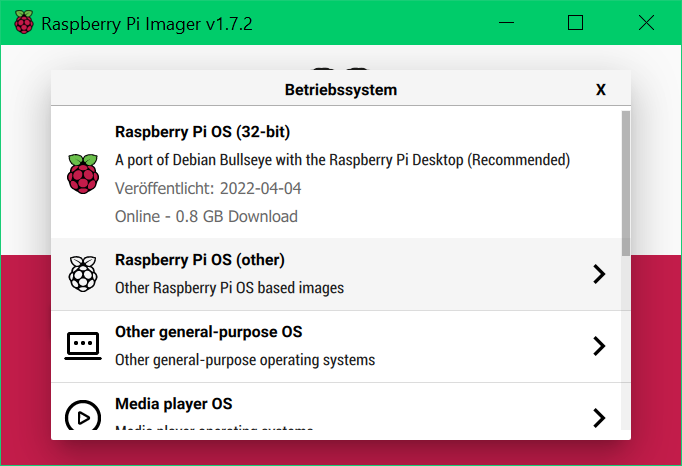 Dafür benötigt man den "Raspberry Pi Imager"